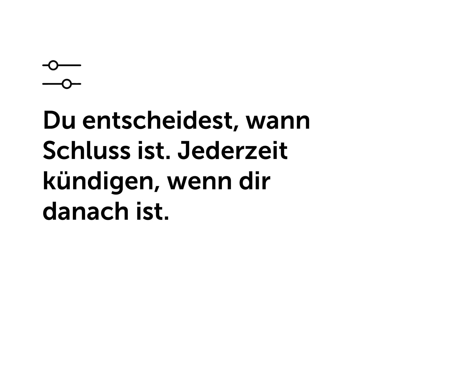 Du kannst das Abo jederzeit kündigen. Die Kündigung wird zum Ende des aktuellen Vertragsmonats wirksam.