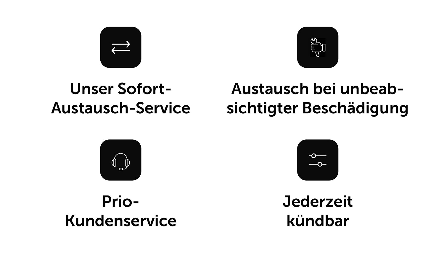 Keine Reparaturen: Statt einer Reparatur schicken wir dir direkt ein komplett neues Gerät mit brandneuen Komponenten.