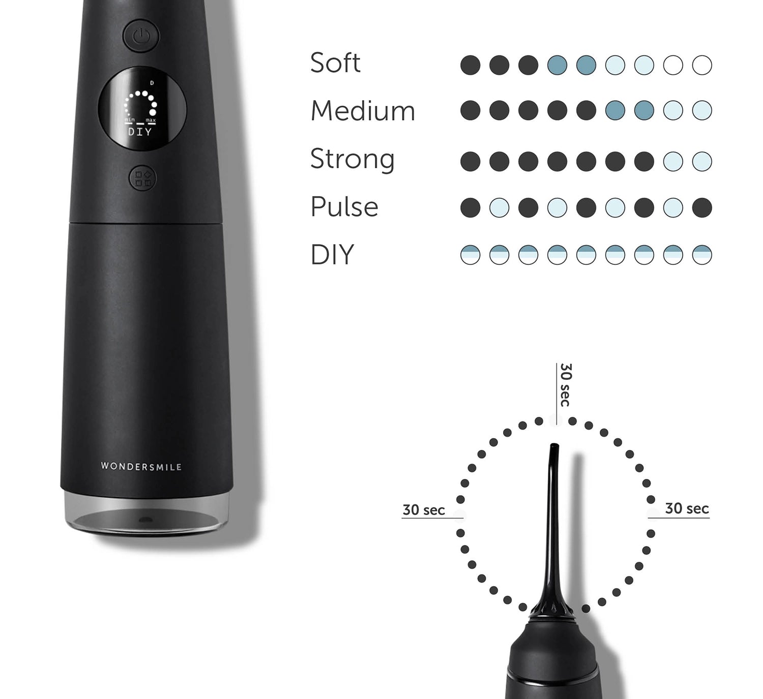 Die Wondersmile Munddusche Waterflow leistet dank innovativer Funktionen wie einer 360° Düsenrotation, intelligentem OLED Display, großem Wassertank und der SmoothFlow Technologie in 4 individuellen Programmen, alles, was Du brauchst, um optimale Ergebnisse zu erzielen.