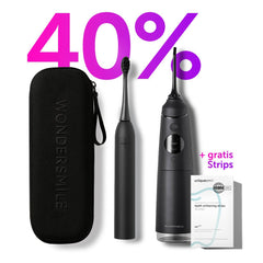 Unser Bundle aus Schallzahnbürste und Munddusche bietet eine ganzheitliche Reinigung, die manuelle Methoden übertrifft. Die Schallzahnbürste entfernt mit hochfrequenten Vibrationen schonend Verfärbungen und Plaque, während die Munddusche dank SmoothFlow-Technologie und 360° Düsenrotation effektiv die Zahnzwischenräume säubert.